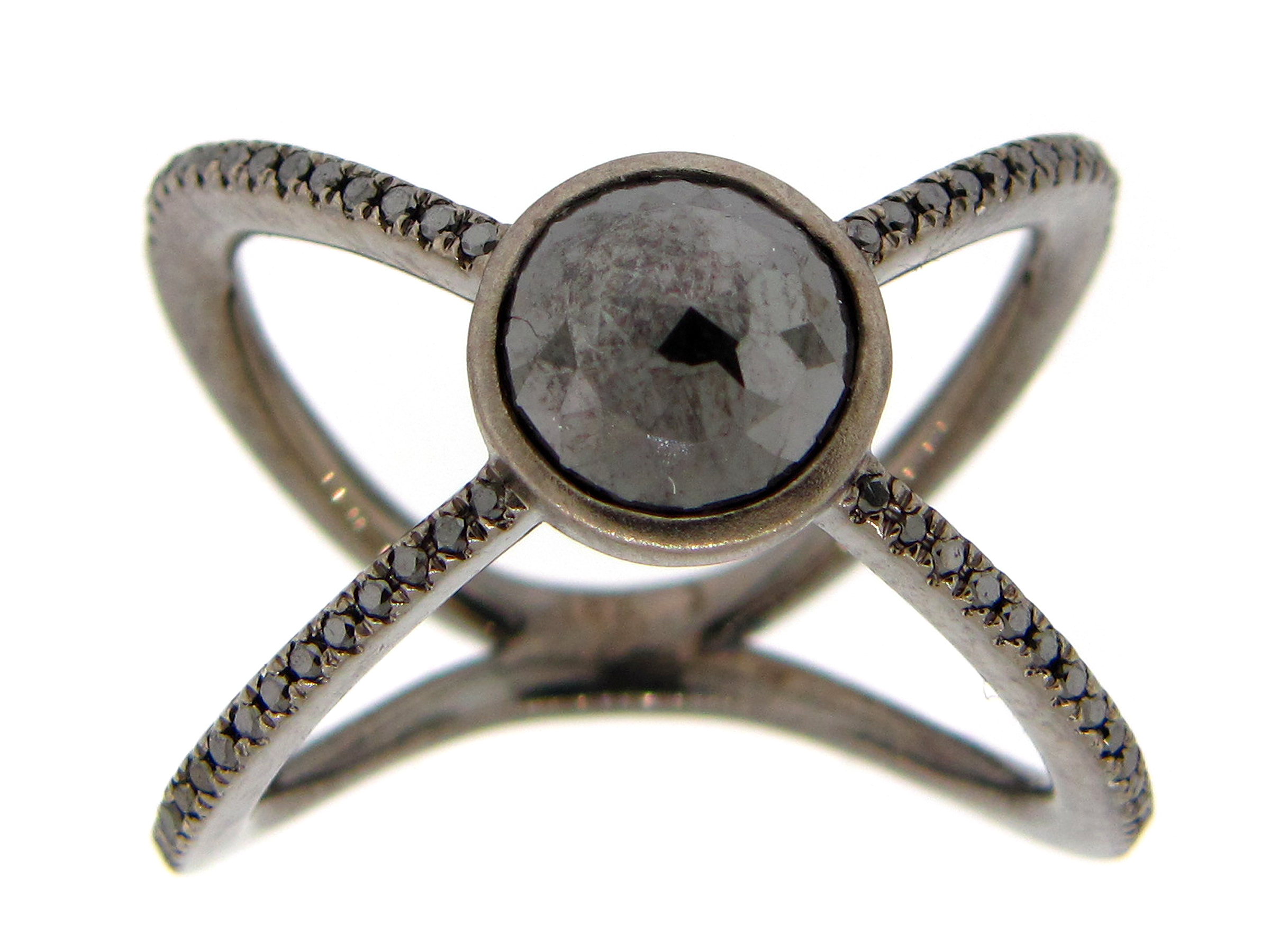 Black Diamond X ring with a bezel set Black Diamond center