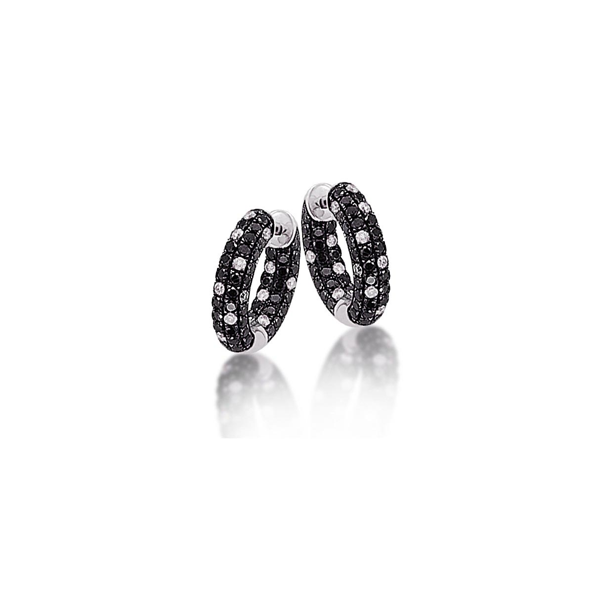 • Micro Pave Black & White Diamond Scattered Hoop Earring