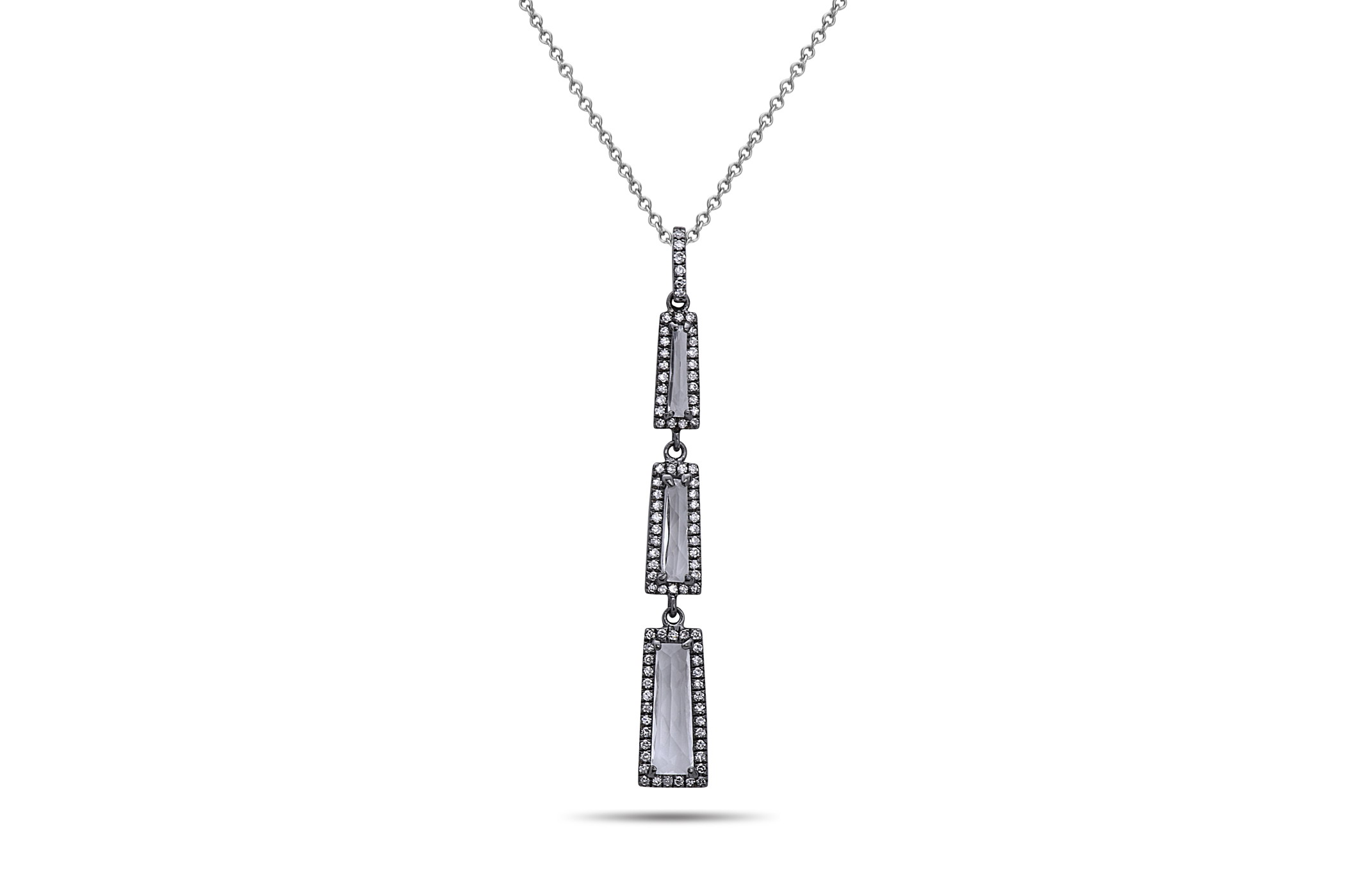 Three section White Topaz dangle pendant with diamond halo with Black Rhodium